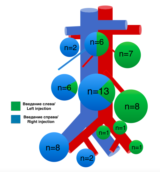 3. Рис. 3. Локализация СЛУ в зависимости от стороны введения ICG. Примечание: рисунок выполнен авторами