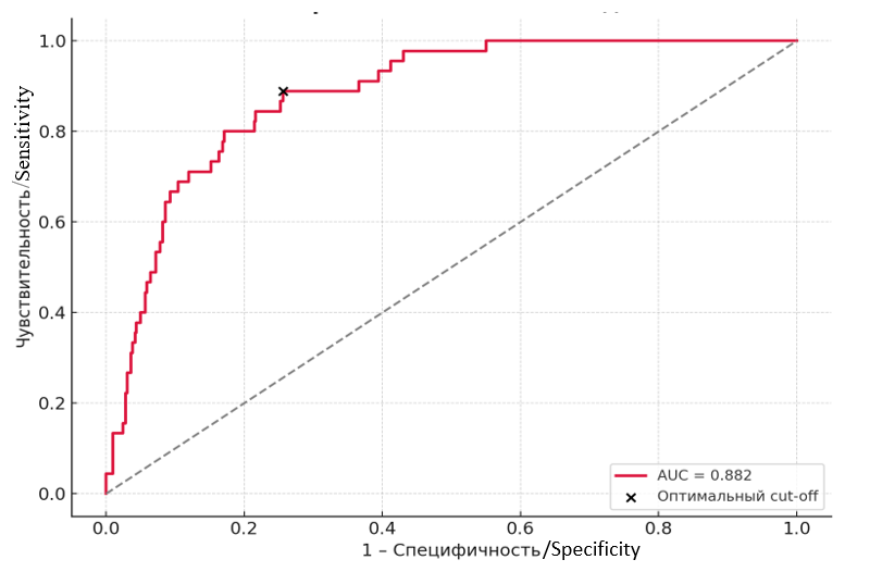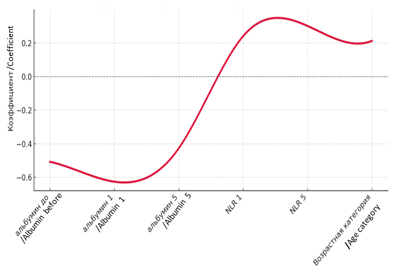 Заключение. Возраст пациента не может рассматриваться как независимый фактор развития несостоятельности анастомоза после резекции толстой кишки, выполненной по поводу КРР. Значимыми предикторами развития несостоятельности являются показатели НЛИ на 1-е и 5-е сут после операции, а также уровень альбумина до операции и на 1-е и 5-е сут после операции.