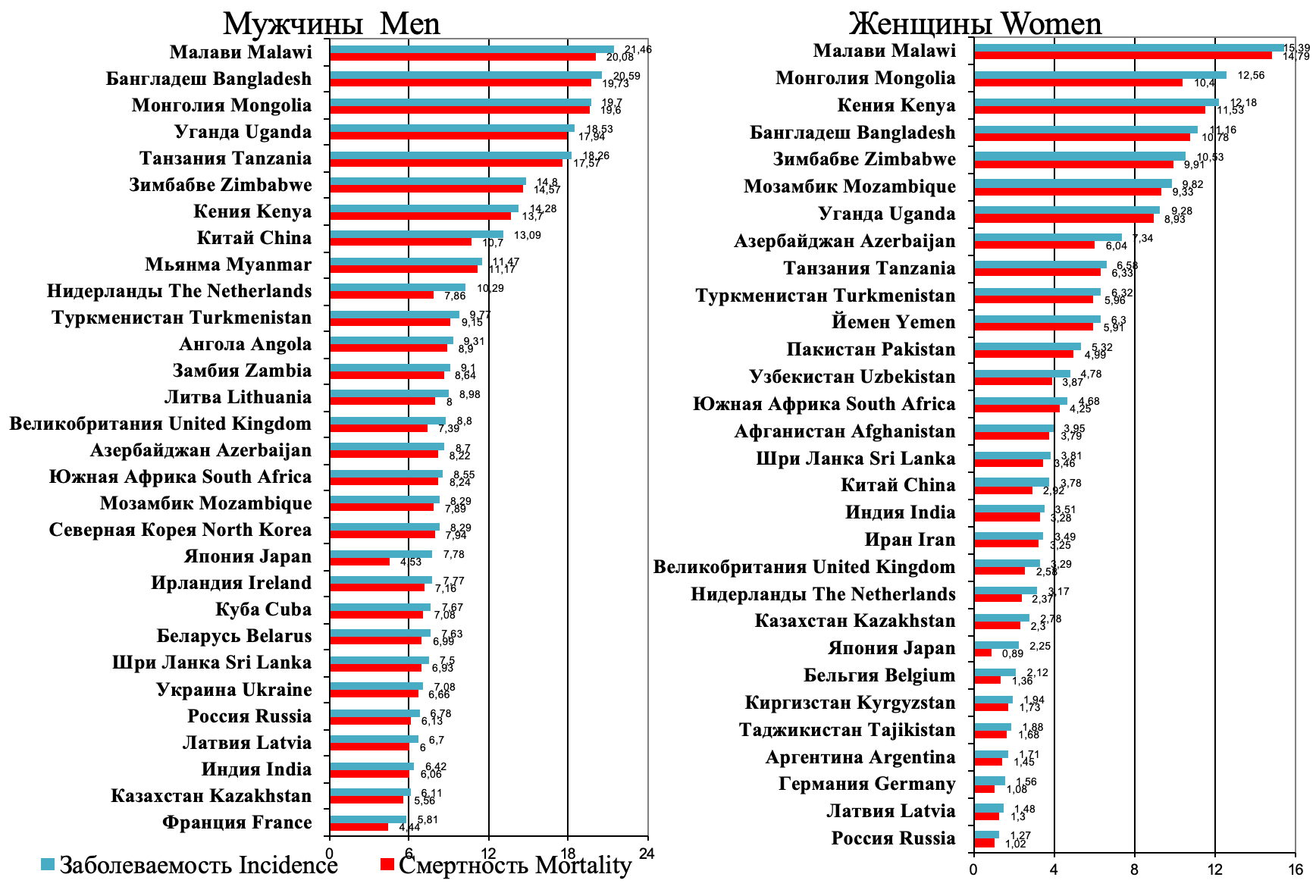3. Рис. 3. Заболеваемость и смертность от рака пищевода в мире (по данным из GLOBOCAN 2022, IARC) [1]