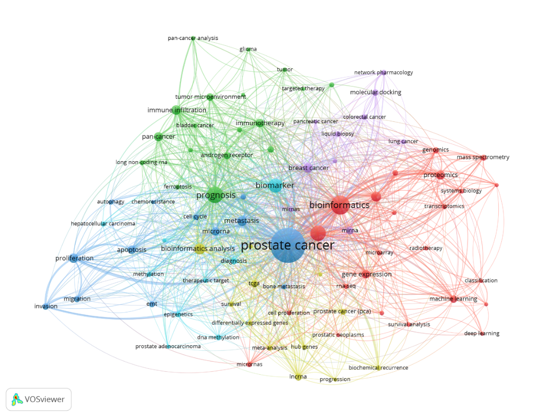 Заключение. Исследования на стыке проблем рака предстательной железы и биоинформатики быстро развиваются, отличаются высокой степенью сотрудничества и распространены по всему миру. Многопрофильный и интегративный характер этих исследований продолжает способствовать углублению понимания, диагностики и лечения рака предстательной железы с помощью передовых биоинформатических подходов.