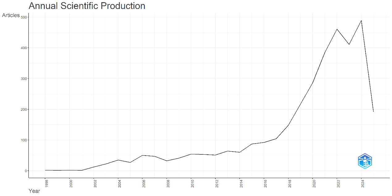 Цель исследования – представить библиометрический анализ, обобщающий глобальные тенденции исследований в области рака предстательной железы и биоинформатики с 1998 по 2025 г.